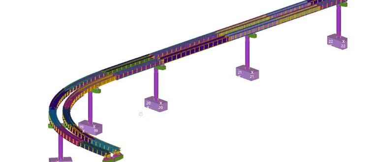 因为场地地形复杂,施工精度要求高,各环节之间协同共享存在障碍,所以我们采用三维实体模拟车站、标准轨道梁、大跨及小半径轨道梁的建造。